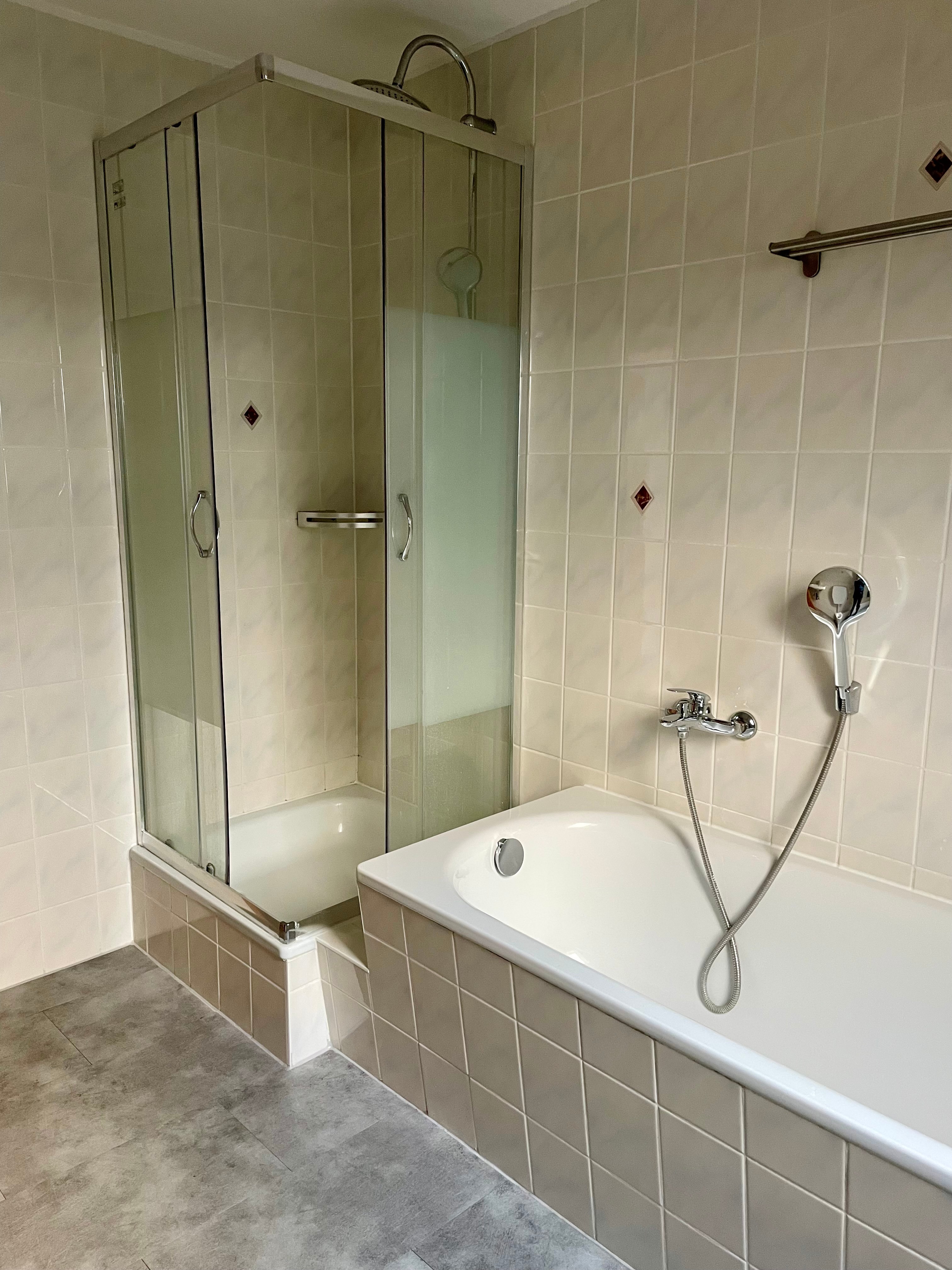 - Ausstattung des Bades Dusche Fenster Badewanne
