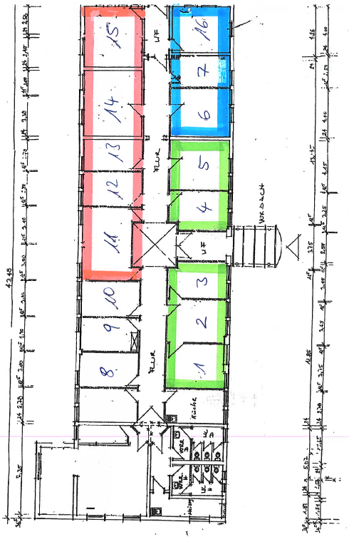 Die Räume 6, 7 und 11-16 (laut Grundriss) werden frei. Für die Räume von 14-16 gibt es die Möglichkeit einen separaten Eingang zu nutzen. Das Lager verfügt über ein funktionales Rolltor.
