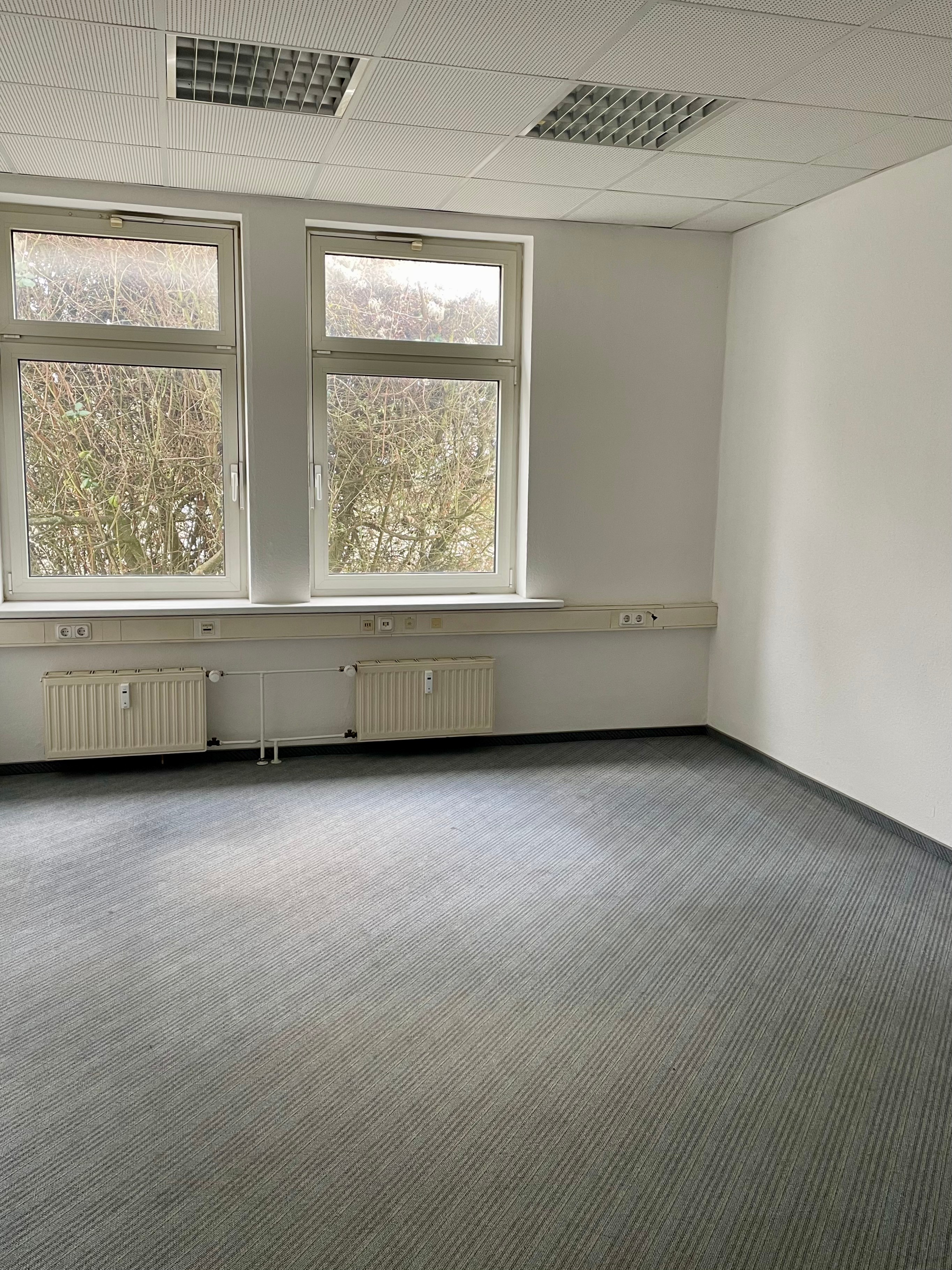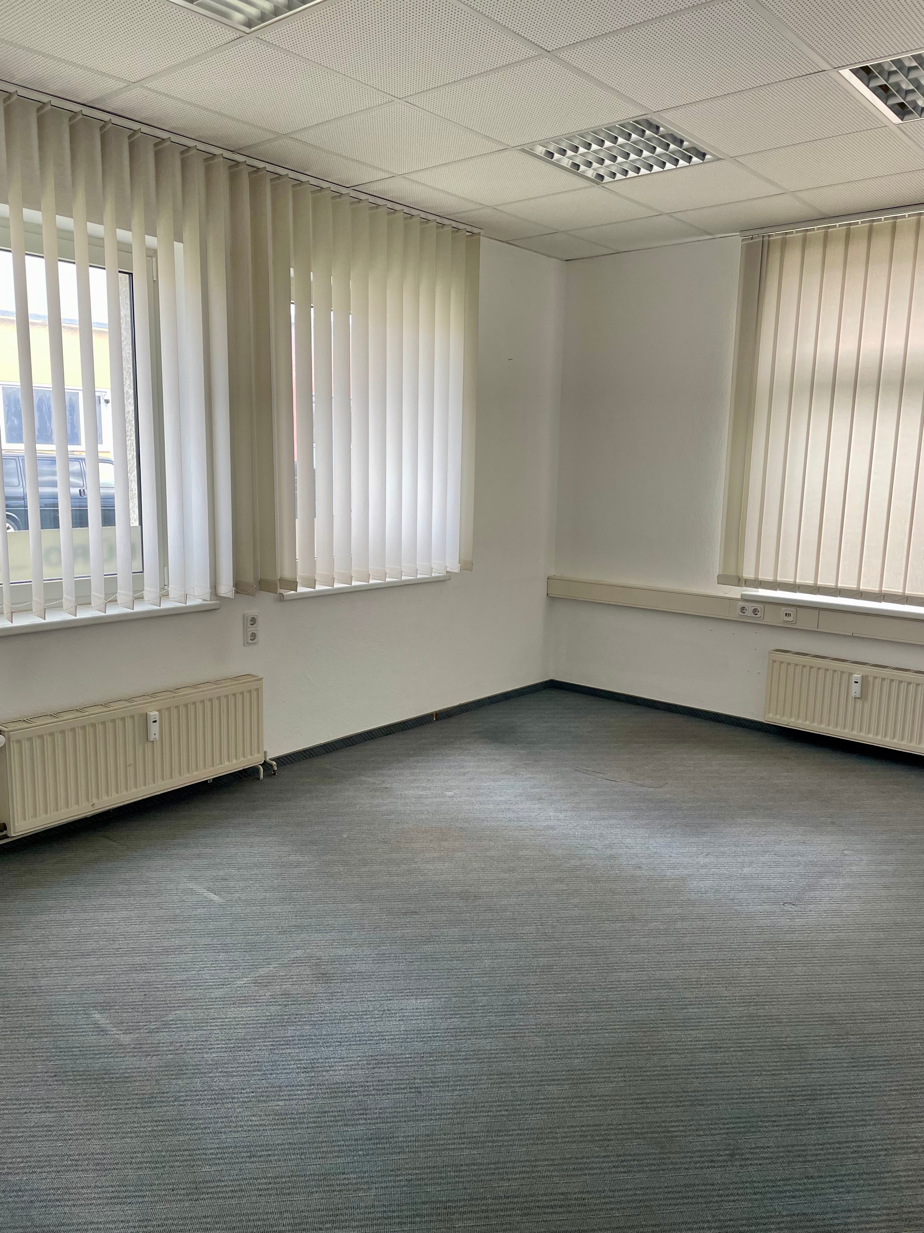 Als Bodenbelag wurde strapazierfähige Auslegeware verwendet. Die Büroräume verfügen über viele Fenster und sind hell und freundlich gestaltet.