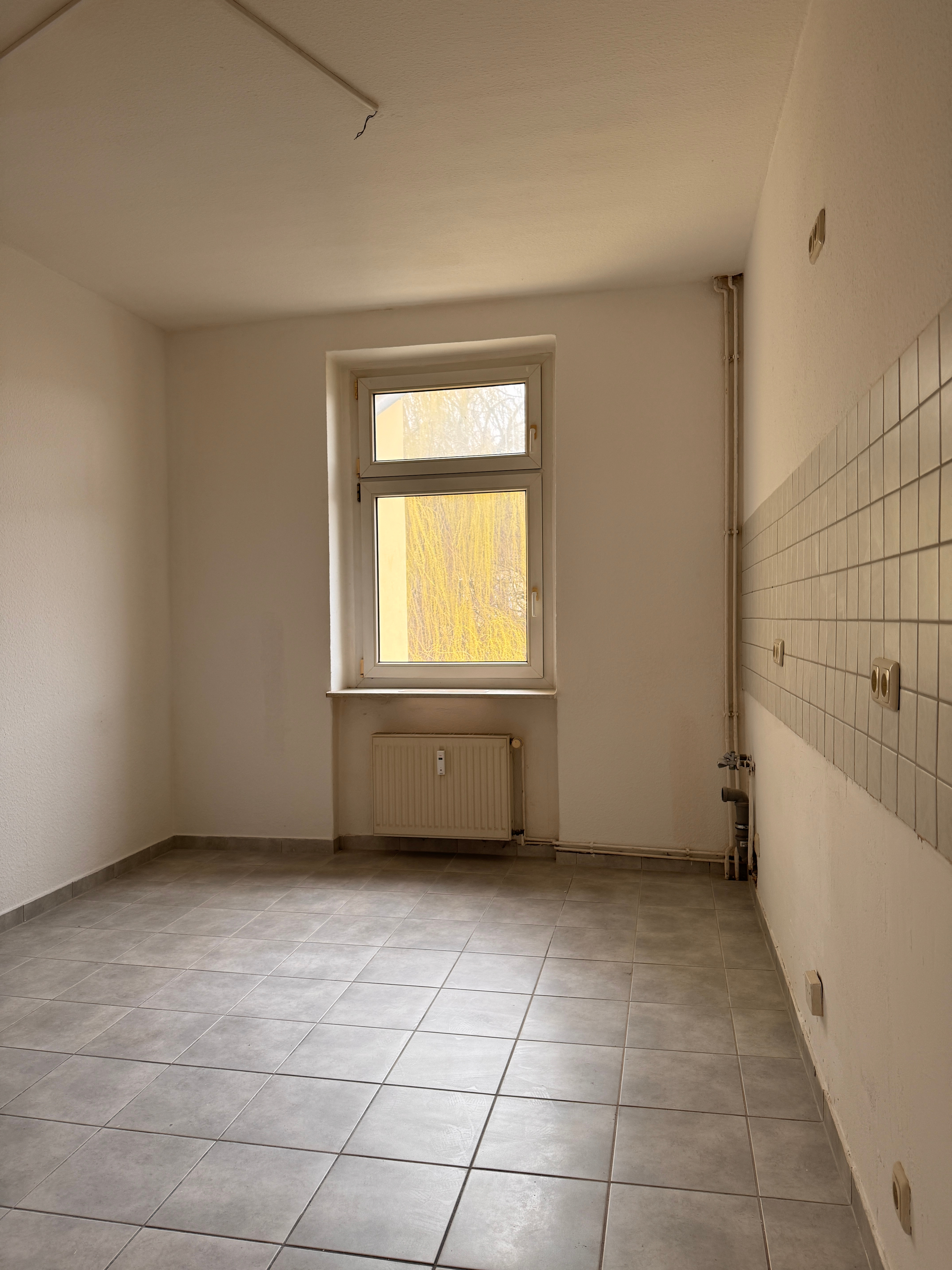 Die großzügige Küche verfügt über ein Fenster und bietet ausreichend Platz für einen Esstisch. Das Badezimmer ist mit einer Badewanne und ebenfalls mit einem Fenster ausgestattet.
