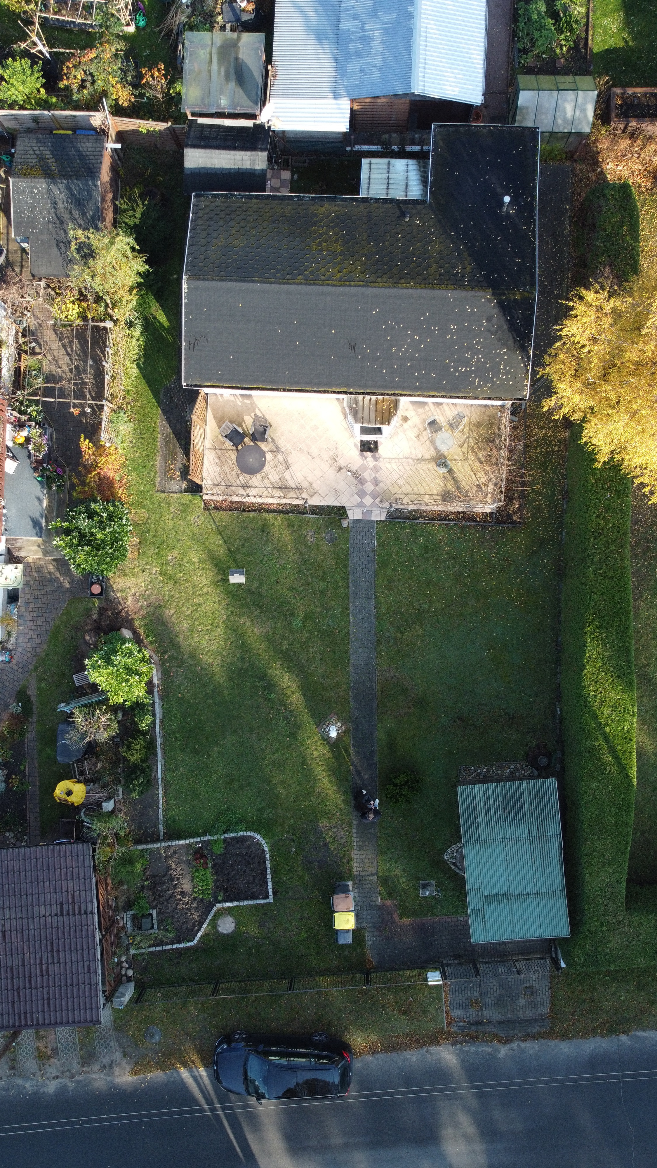 Ein Carport mit einem Stellplatz sowie ein kleiner Schuppen/Hauswirtschaftsraum ergänzen das Angebot.