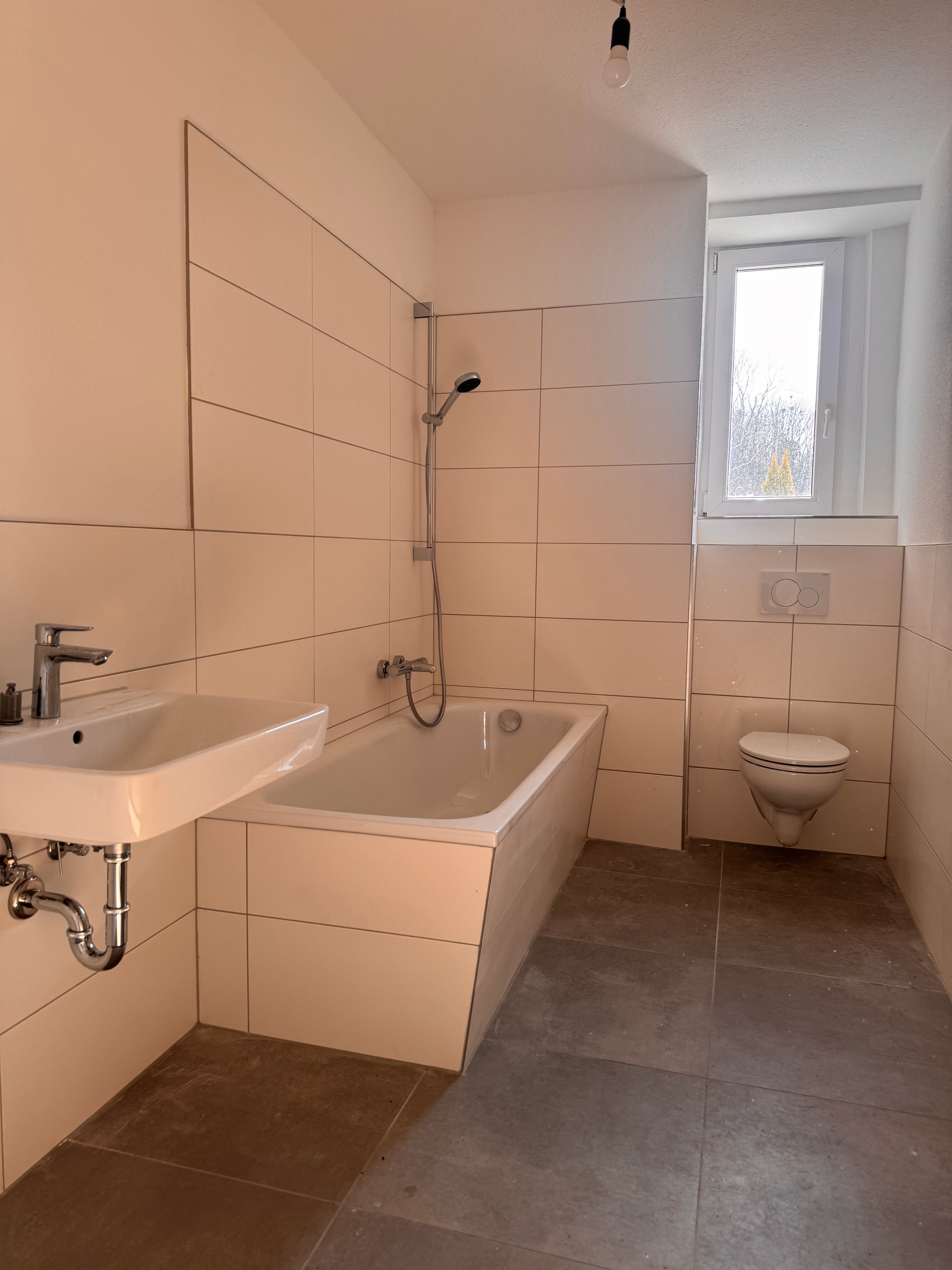 Das großzügige Tageslichtbad wurde umfassend saniert und verfügt über eine moderne Badewanne sowie ausreichend Platz für eine Waschmaschine.