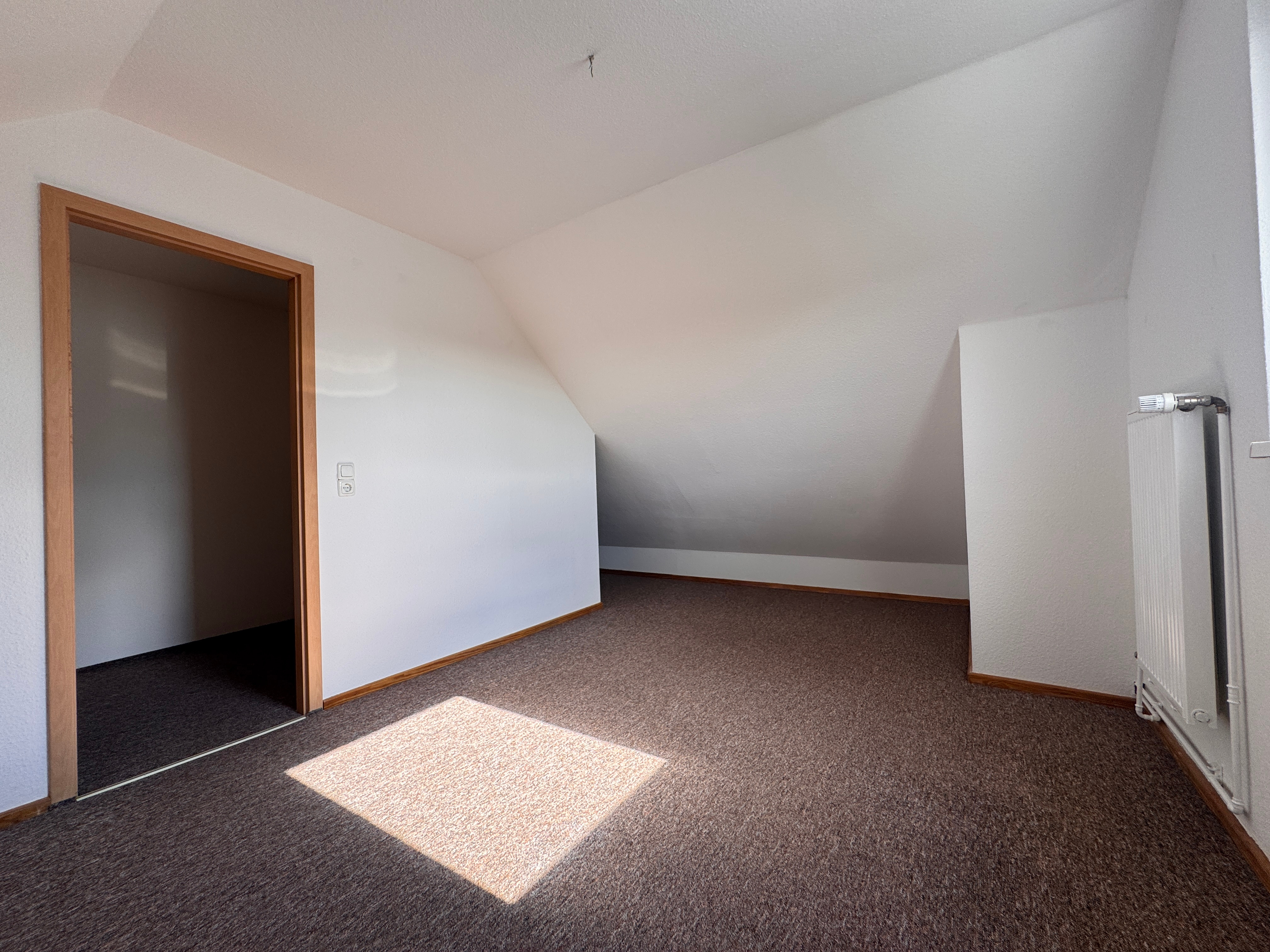 Im Obergeschoss liegen zwei großzügige, lichtdurchflutete Schlafzimmer mit Gaubenfenstern sowie ein Vollbad mit Dusche, Badewanne, WC und Fenster. Das ausgebaute Dachgeschoss bietet zusätzlichen Wohnraum und wird derzeit als drittes Schlafzimmer genutzt.
